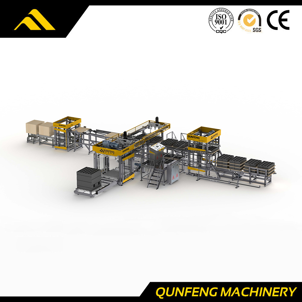 El sistema de paletizado de posición baja (Cuber) es una solución de automatización avanzada diseñada para optimizar el proceso de apilado de productos en paletas con una mínima entrada manual. Este sistema proporciona un paletizado eficiente y consistente mediante el uso de robótica de última generación y controles precisos, lo que le permite manejar diversos tamaños y formas de productos. Su diseño fácil de usar permite una fácil integración en las líneas de producción existentes, optimizando el flujo de trabajo y reduciendo los costos laborales. La configuración de posición baja también garantiza un acceso más fácil y reduce la tensión de los operadores. Ideal para industrias que buscan mejorar la eficiencia y precisión del paletizado, este sistema aumenta la productividad general. Por lo general, se coloca de forma independiente cerca del patio de curado para apilar bloques curados, pero también se puede conectar directamente a la línea de producción de bloques para paletizar en línea.